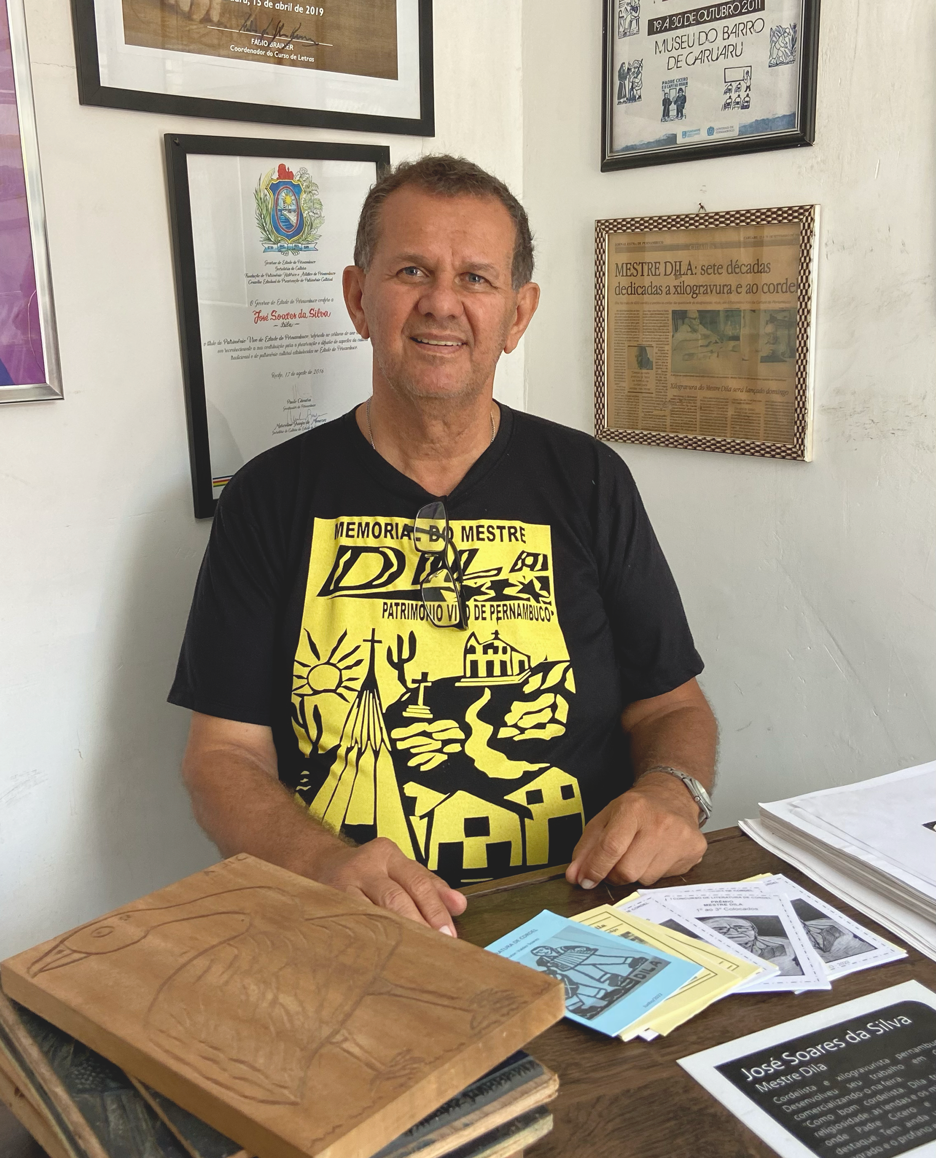 Mestre Dila foi xilógrafo e tipógrafo, residiu na cidade de Caruaru onde produziu gravuras, clichês, folhetos, rótulos, e demais peças gráficas até o fim de sua vida, em 2019.